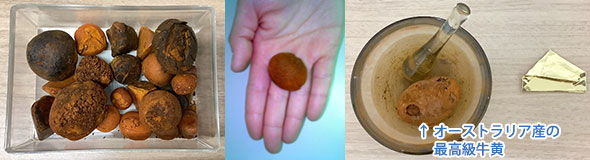 牛黄はいわゆる開竅薬(かいきょう)、つまり意識をはっきりさせる薬として知られてきた。牛黄は1,000頭に1頭の割合で見つかる牛の胆石で、紀元2世頃から中国で使われだした。
