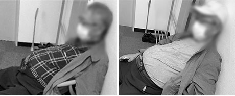 陰嚢水腫のため椅子に座ることが出来なかった。治療により陰嚢水腫がかなり小さくなり、歩行ができるようになった。