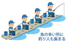 私:「なるほど。魚の沢山いるところに釣り人が集まってくる。魚つまり、顧客のいないところでは結局売り上げも上がらないのですね」