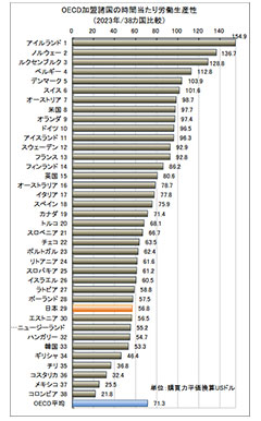 何故そんなに貧しい国かと言えば、65歳以上の老人が多いからだ。また日本の労働生産性はとても低くOECD加盟国38か国中29位でしかない。