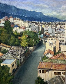 神戸に飾ってある絵は50年ほど前の神戸の北野を描いた姉の絵だ。展覧会に出して賞をもらったと聞いている。