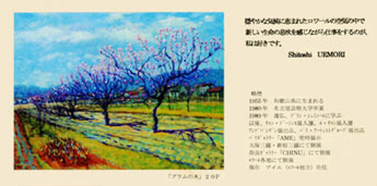 私が上森画伯と出会った時、一番欲しかった絵は、案内状に描かれていた絵だった。【プラムの木】という題名がついていた。絵には画家の絵に込めた思いの名前がついている。例えばゴッフォの【夜のカフェテラス】といった名前だ。この絵からは早春の冷たい空気と暖かい春の日差しを感じることができた。三越の個展で初めて会った上森画伯にこの絵の魅力について話すことは出来ず、2回目に行ったときは、【杏林伝説】の絵を描いて欲しいと頼むのが精いっぱいだった。