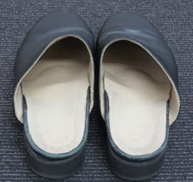 写真はオーストリア人の靴マイスターが私の足の木型から作ったミュールですが、中足骨パッドが見えると思います。